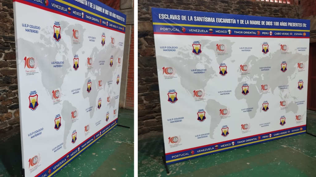 Backing de prensa profesional para eventos, ruedas de prensa, entrevistas o sesiones fotográficas, fabricado en estructura de hierro resistente con banner impreso y tensado. Incluye base autosoportable y sistema plegable para fácil transporte.